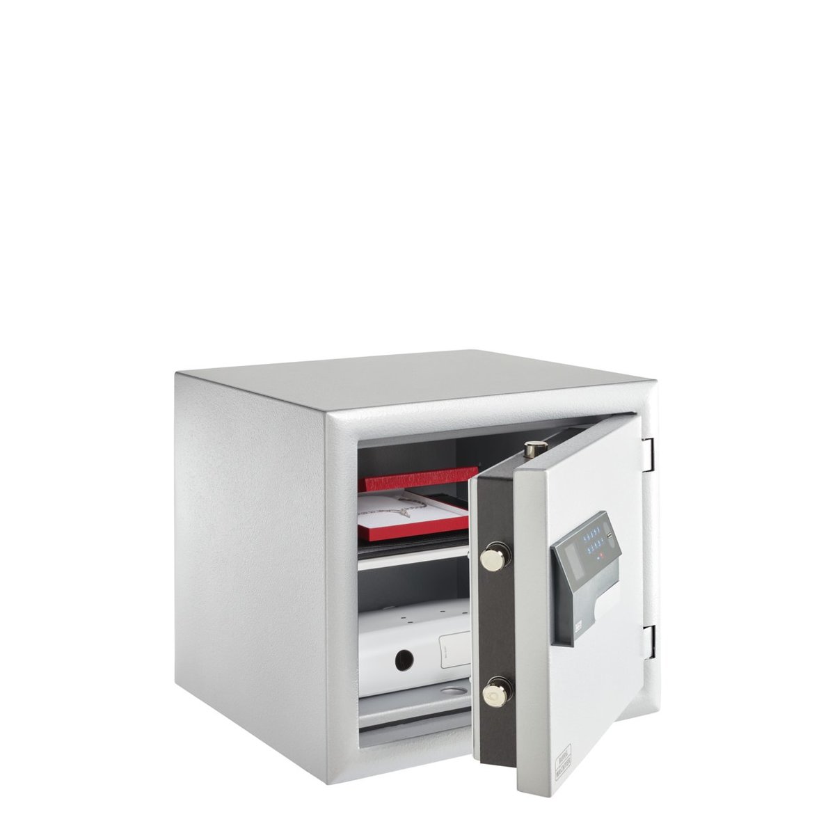 Deze hoogwaardige kluis combineert gecertificeerde inbraakwering met betrouwbare brand- en hittbescherming. De ideale, veilige bewaarplaats voor uw sieraden, contant geld, belangrijke documenten en andere kostbaarheden – thuis én op kantoor.