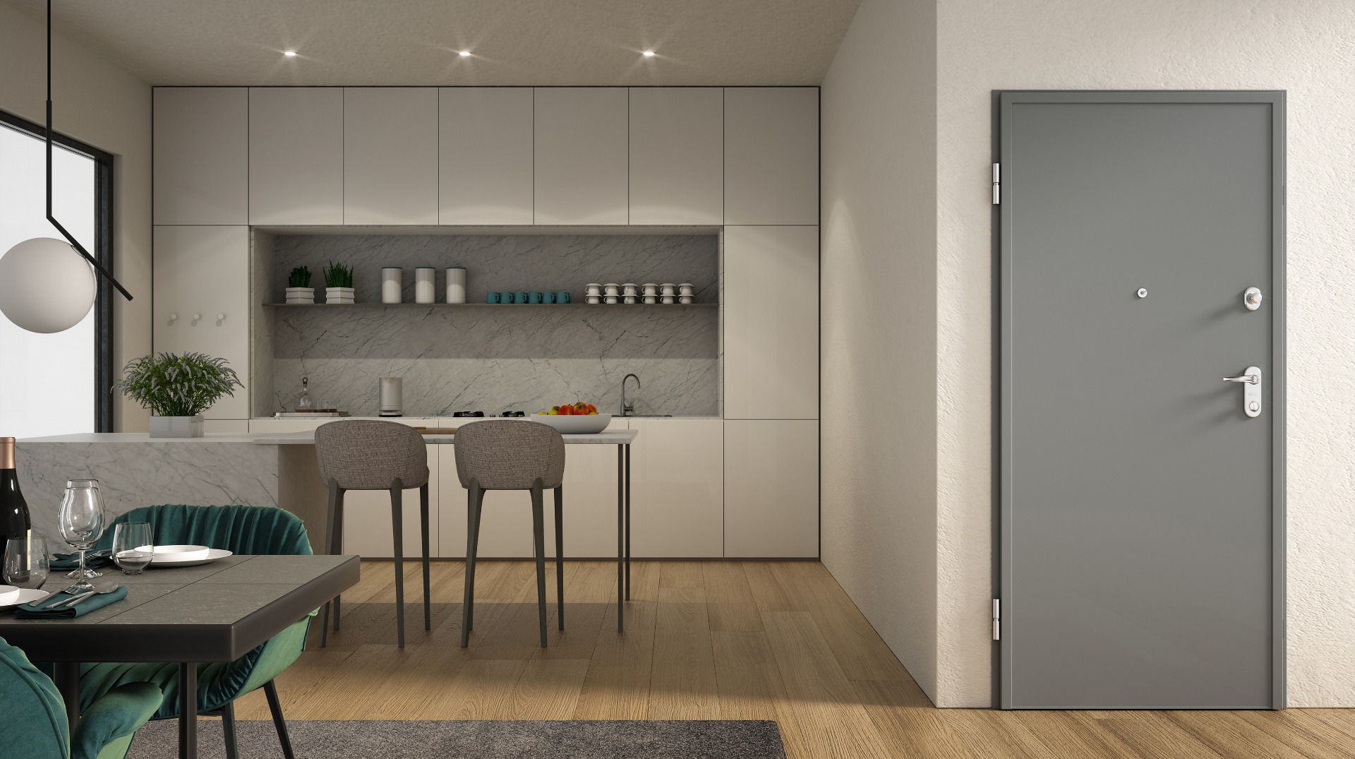 De kracht van een gepantserde deur, verpakt in een verfijnd design: onzichtbare scharnieren, een royale opening tot 180° en de keuze uit diverse slimme beveiligingsmogelijkheden - van het klassieke dubbelbaardslot tot een hoogwaardige veiligheidscilinder of volledig elektronisch slot. Wall Security verenigt ongeëvenaarde stevigheid met een stijlvolle afwerking die perfect past bij het karakter van uw woning.